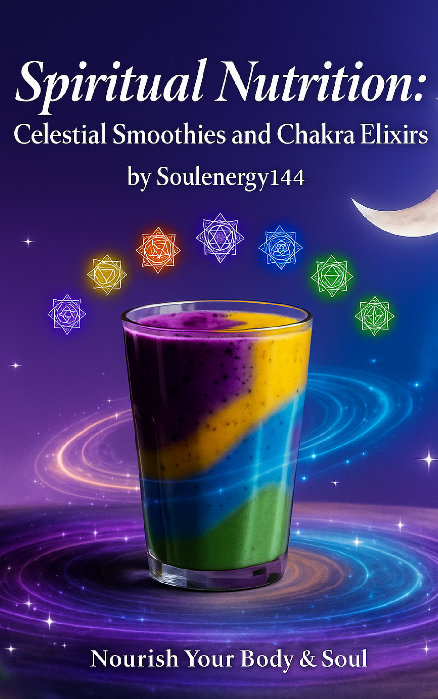 Awaken your energy, align your body, and drink in divine light. Spiritual Nutrition: Celestial Smoothies and Chakra Elixirs is a high-vibrational smoothie guide that unites plant-based nutrition with chakra wisdom and planetary energy. Inside you’ll discover 20 alkaline smoothie recipes organized across four celestial series — Solar (vitality and confidence), Lunar (calm and intuition), Planetary (mind and manifestation), and Elemental (balance and spirit connection). Each recipe includes an affirmation, nutritional insight, and celestial note to deepen your practice. Bonus sections include a cosmic kitchen prep guide, a printable shopping list, seasonal blending rituals, and a Frequency Index mapping ingredients to chakras and Hz tones. Whether you’re a spiritual practitioner, plant-based enthusiast, or someone seeking more intention in daily nourishment, this guide transforms every sip into a sacred act.