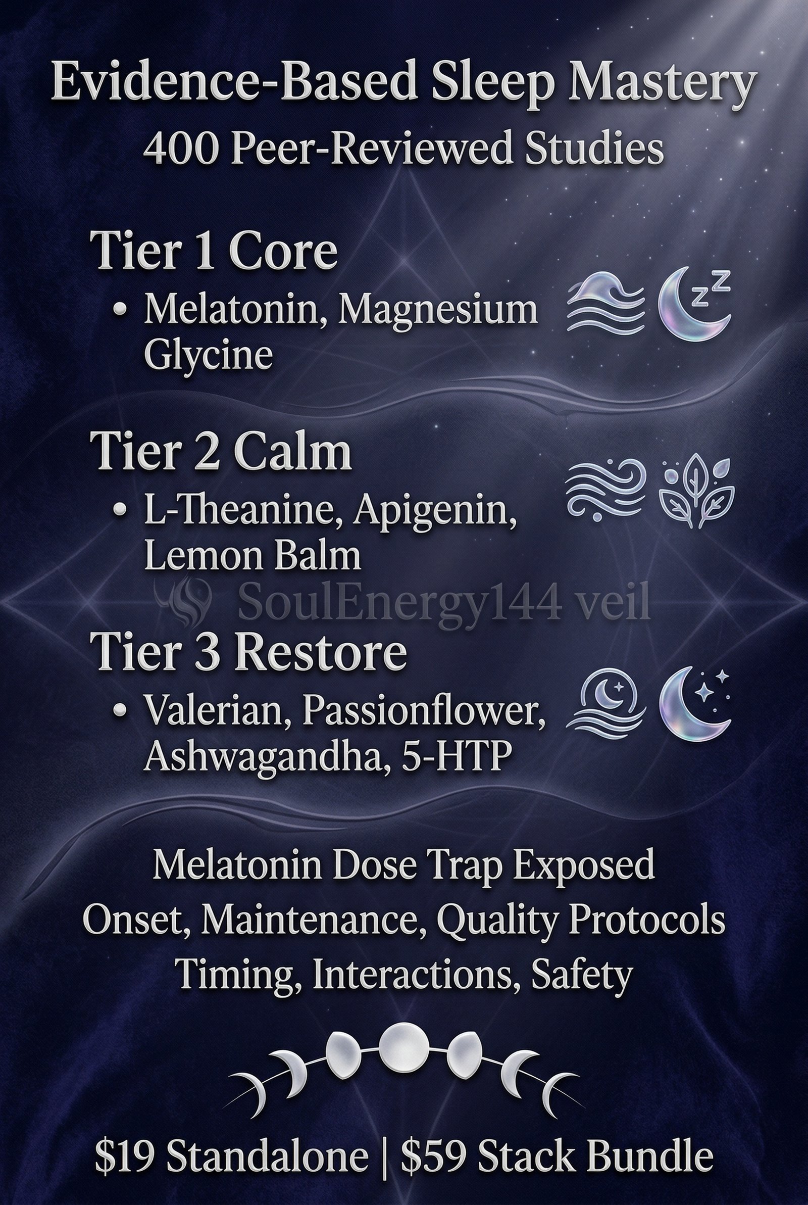 The evidence-based blueprint for building your optimal sleep supplement stack. Covers magnesium forms, melatonin dosing, synergistic compounds, and verified brand picks. 15-20 pages of actionable protocols.